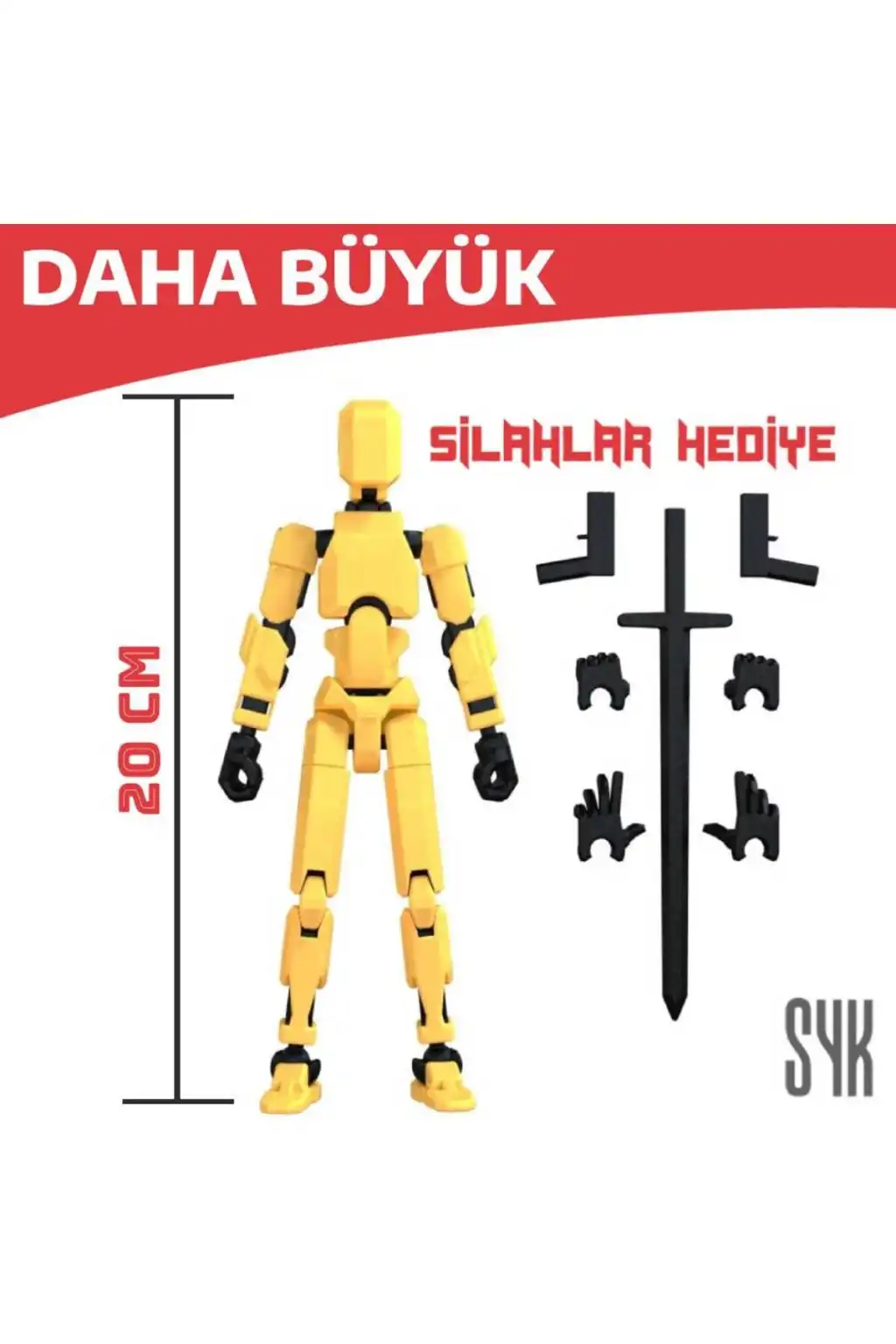 (BÜYÜK) Robot 20 Dummy Sarı Siyah Tüm Eklemleri Hareketli Aksiyon Figürü Oyuncak