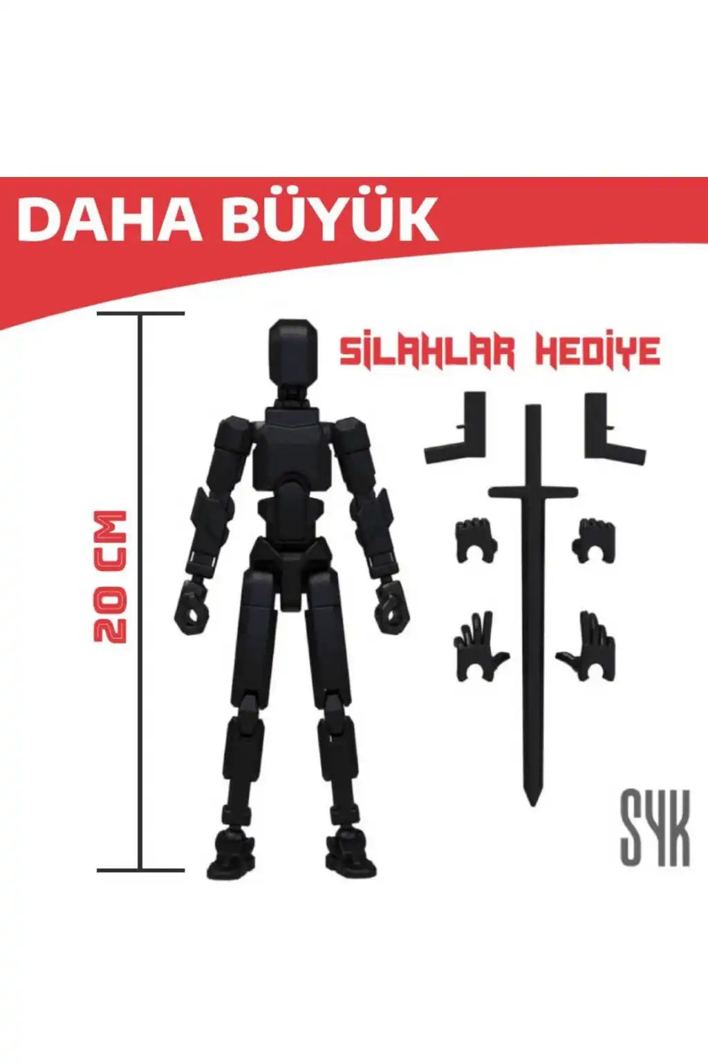 Robot 13 Dummy Siyah Siyah Tüm Eklemleri Hareketli Aksiyon Figürü Oyuncak