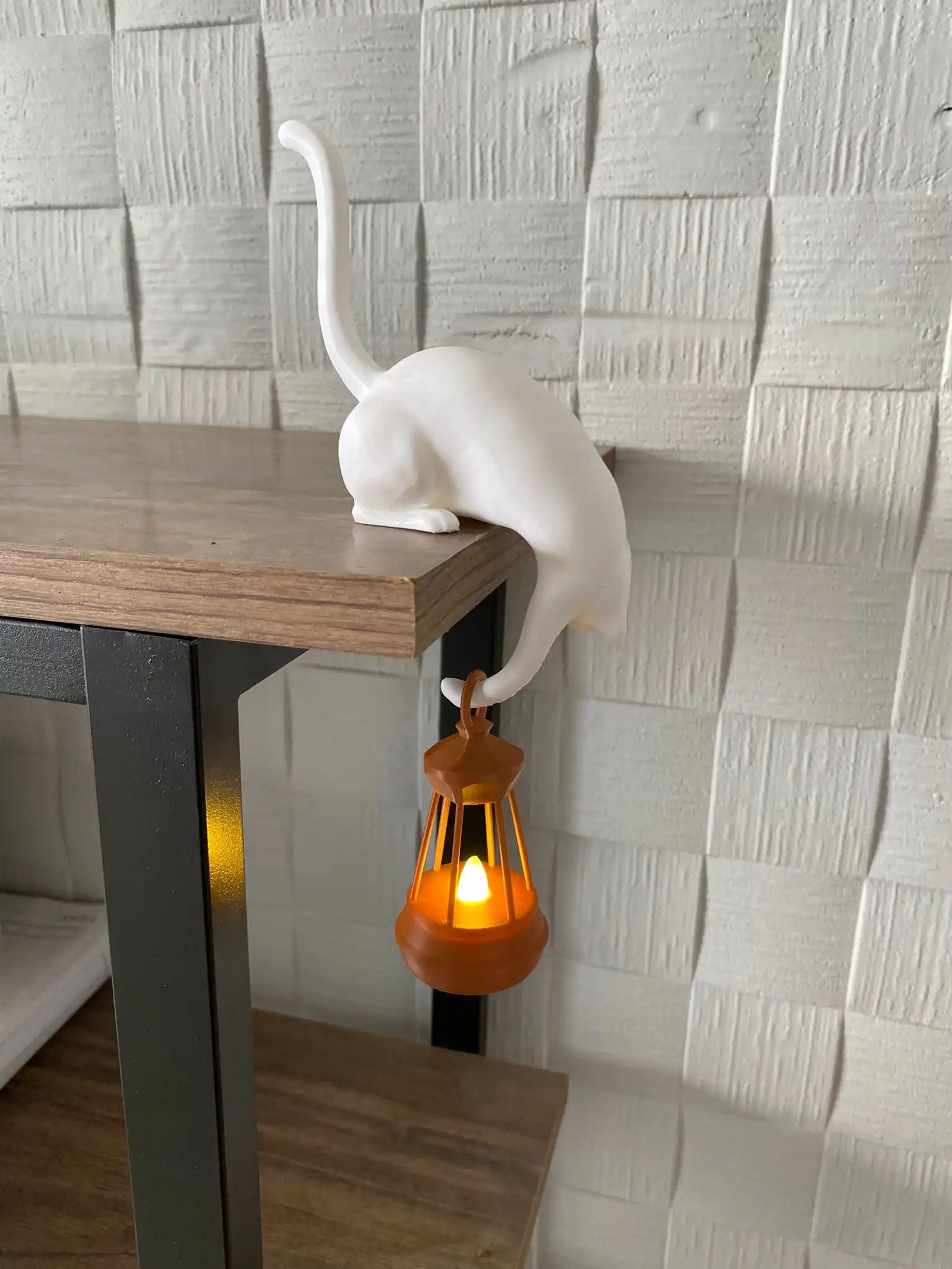 Evinize hem şıklık hem de sıcak bir atmosfer katacak bu özel tasarım kedi figürü, modern dekorasyonun en tatlı tamamlayıcısı! Masanızın ya da rafınızın kenarına yerleştirildiğinde, sarkıttığı mini fener ile ortamınıza loş ve huzurlu bir ışık yayar.