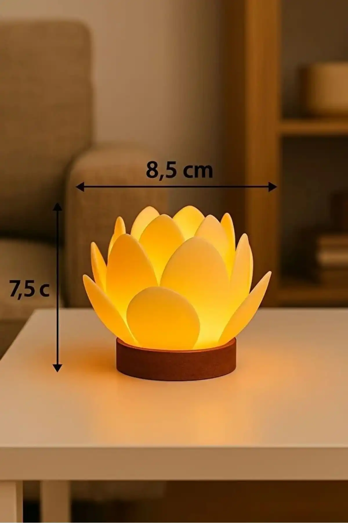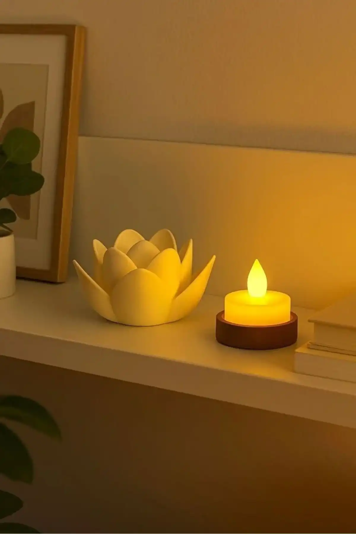 Lotus çiçeğinin zarafetinden ilham alınarak tasarlanan bu LED lotus mumluk, bulunduğu ortama huzurlu ve sıcak bir atmosfer kazandırır. Yumuşak ışığı sayesinde salon, yatak odası, çalışma alanı ve özel köşelerde dekoratif aydınlatma olarak şık bir tamamlayıcıdır.