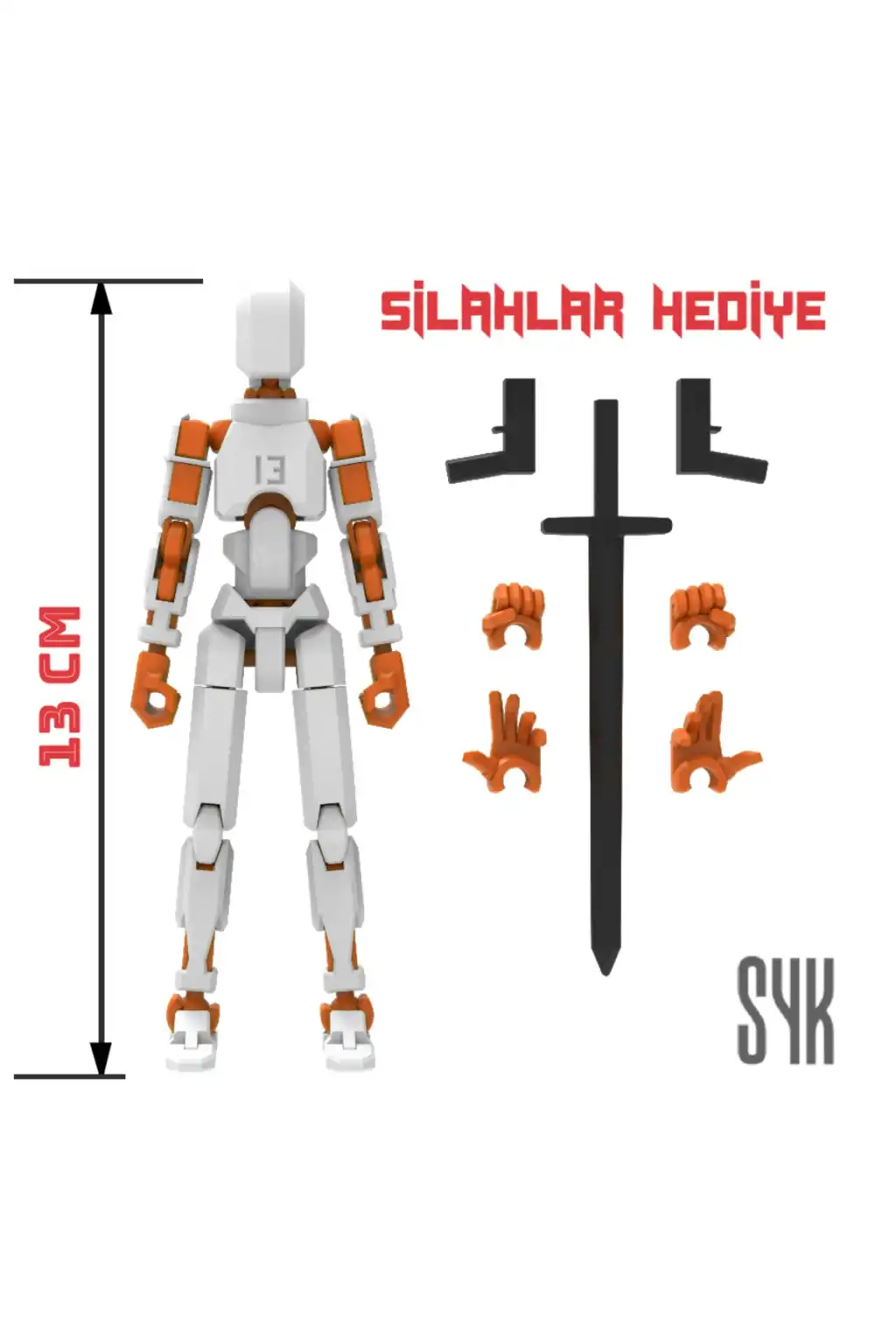 Robot 13 Dummy Beyaz Turuncu Tüm Eklemleri Hareketli Aksiyon Figürü Oyuncak