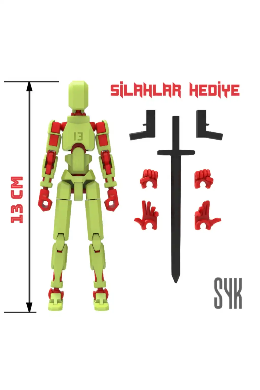 Tüm eklemleri hareketli olan bu Dummy figürü, çocukların eğlenceli ve interaktif oyun saatleri geçirmesini sağlar.; Fıstık Yeşil ve Kırmızı renkleriyle dikkat çeken tasarım, çocukların ilgisini kolayca çeker.; 3 boyutlu yazıcı ile üretilen bu Dummy, çocukların hayal gücünü desteklerken aynı zamanda motor becerilerinin gelişimine katkı sağlar.; Ürünün dış gövdesi PLA, iskeleti ise dayanıklı PETG malzemeden üretilmiştir.; Montajlanmış şekilde gönderilmektedir.; (Boy: 13 cm).; DUMMY 13 Printable Jointed Figure