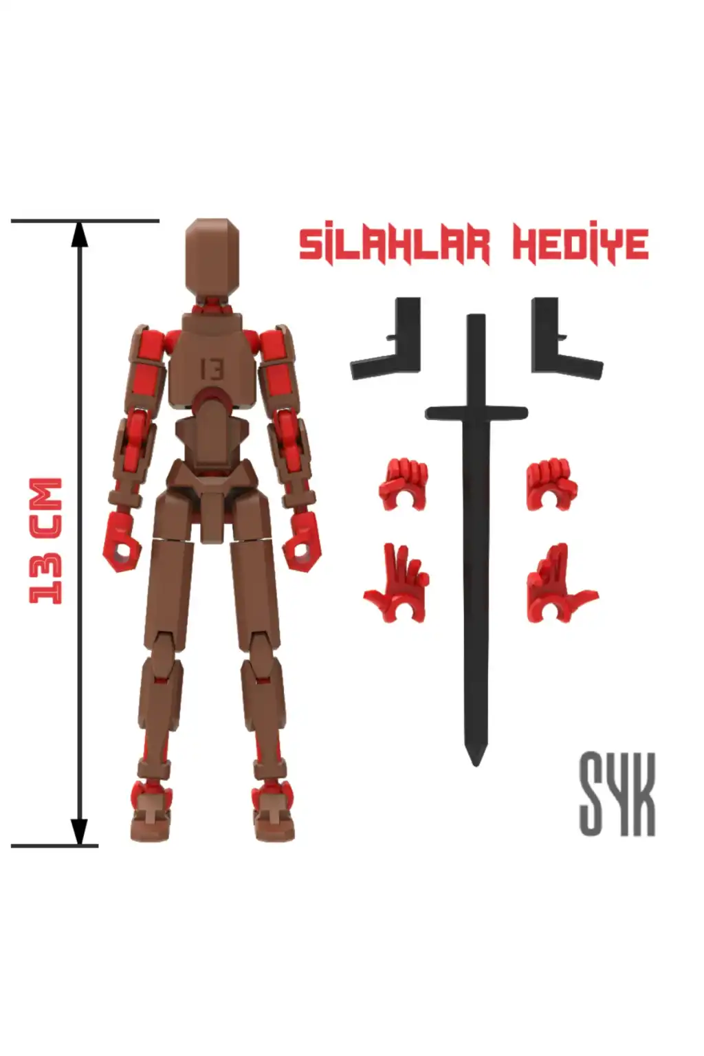 Tüm eklemleri hareketli olan bu Dummy figürü, çocukların eğlenceli ve interaktif oyun saatleri geçirmesini sağlar.; Kahverengi ve Kırmızı renkleriyle dikkat çeken tasarım, çocukların ilgisini kolayca çeker.; 3 boyutlu yazıcı ile üretilen bu Dummy, çocukların hayal gücünü desteklerken aynı zamanda motor becerilerinin gelişimine katkı sağlar.; Ürünün dış gövdesi PLA, iskeleti ise dayanıklı PETG malzemeden üretilmiştir.; Montajlanmış şekilde gönderilmektedir.; (Boy: 13 cm).; DUMMY 13 Printable Jointed Figure ©