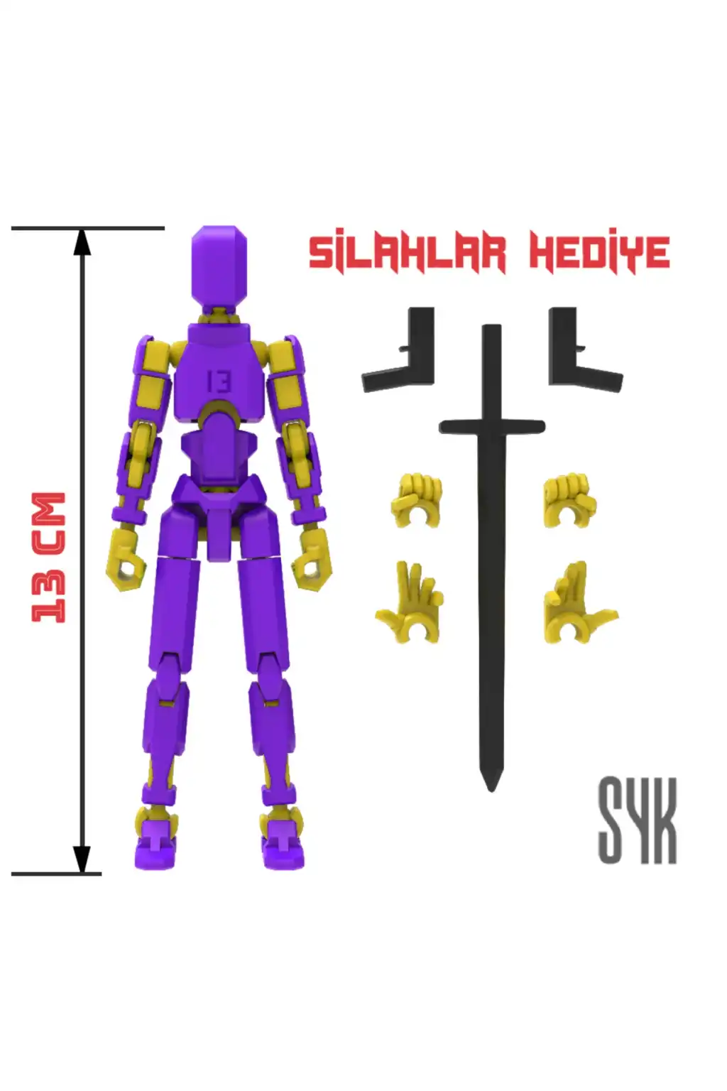Tüm eklemleri hareketli olan bu Dummy figürü, çocukların eğlenceli ve interaktif oyun saatleri geçirmesini sağlar.; Mor ve Sarı renkleriyle dikkat çeken tasarım, çocukların ilgisini kolayca çeker.; 3 boyutlu yazıcı ile üretilen bu Dummy, çocukların hayal gücünü desteklerken aynı zamanda motor becerilerinin gelişimine katkı sağlar.; Ürünün dış gövdesi PLA, iskeleti ise dayanıklı PETG malzemeden üretilmiştir.; Montajlanmış şekilde gönderilmektedir.; (Boy: 13 cm).; DUMMY 13 Printable Jointed Figure © 2023 by L