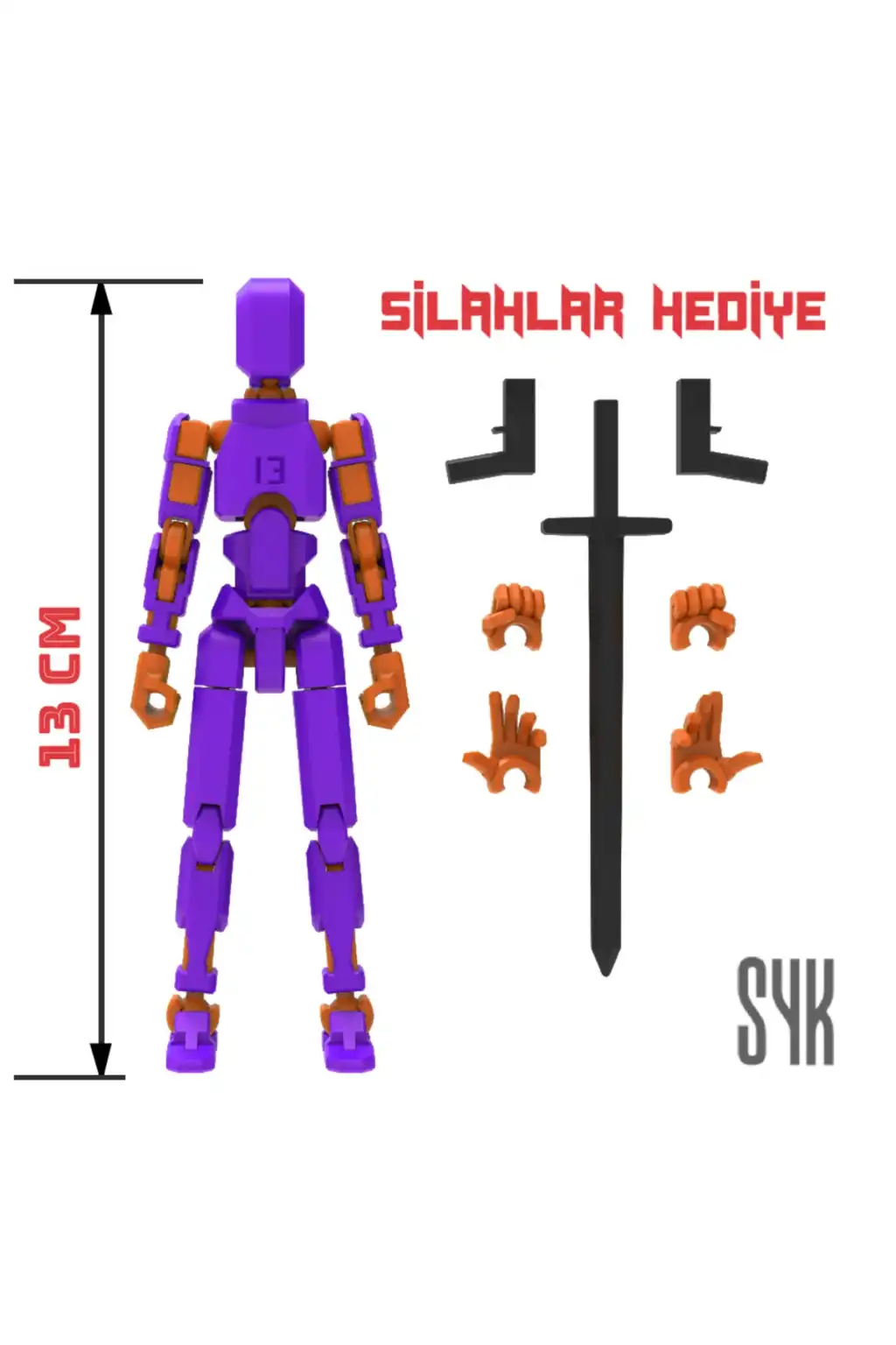 Tüm eklemleri hareketli olan bu Dummy figürü, çocukların eğlenceli ve interaktif oyun saatleri geçirmesini sağlar.; Mor ve Turuncu renkleriyle dikkat çeken tasarım, çocukların ilgisini kolayca çeker.; 3 boyutlu yazıcı ile üretilen bu Dummy, çocukların hayal gücünü desteklerken aynı zamanda motor becerilerinin gelişimine katkı sağlar.; Ürünün dış gövdesi PLA, iskeleti ise dayanıklı PETG malzemeden üretilmiştir.; Montajlanmış şekilde gönderilmektedir.; (Boy: 13 cm).; DUMMY 13 Printable Jointed Figure © 2023 b