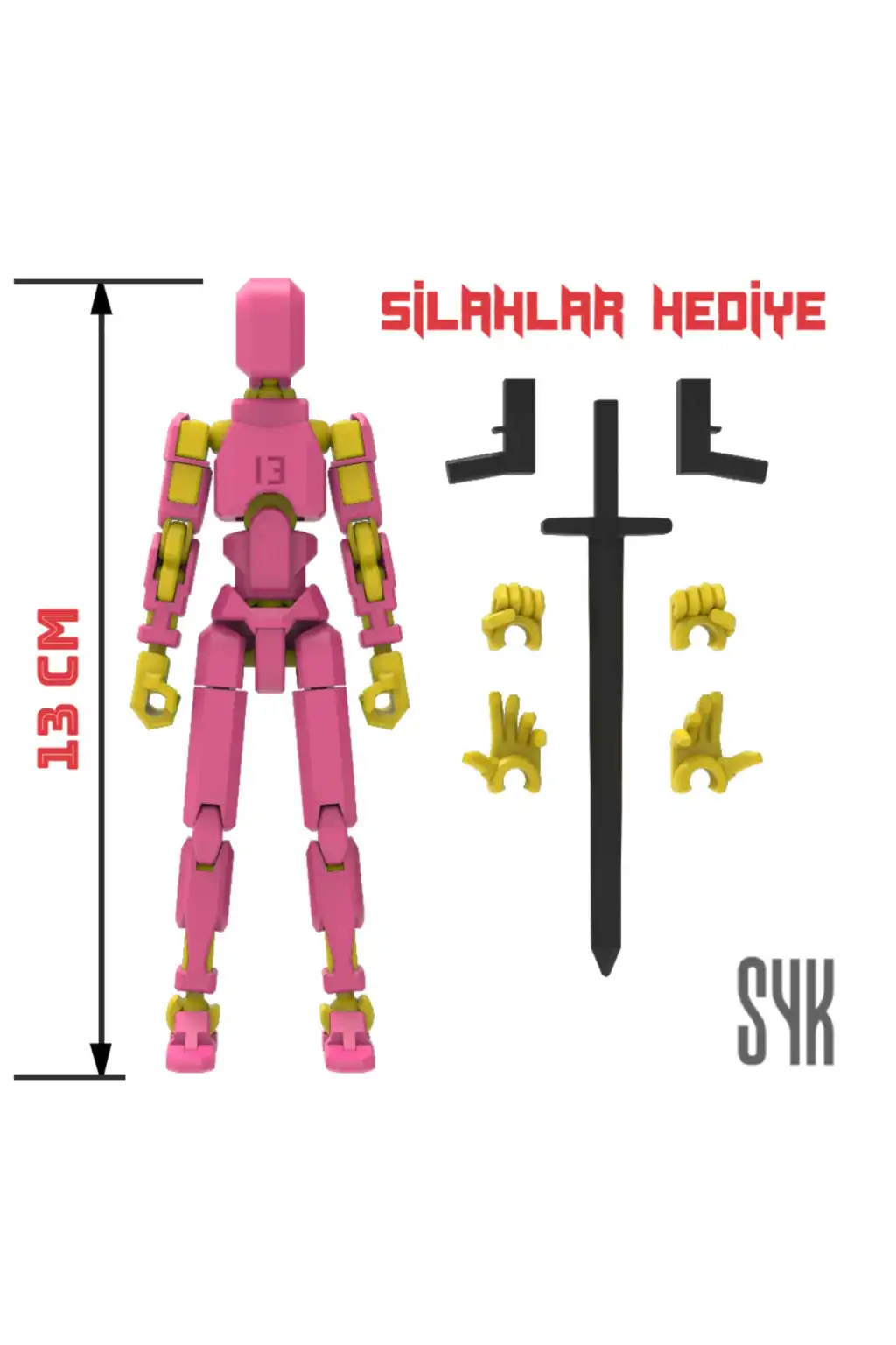Tüm eklemleri hareketli olan bu Dummy figürü, çocukların eğlenceli ve interaktif oyun saatleri geçirmesini sağlar.; Pembe ve Sarı renkleriyle dikkat çeken tasarım, çocukların ilgisini kolayca çeker.; 3 boyutlu yazıcı ile üretilen bu Dummy, çocukların hayal gücünü desteklerken aynı zamanda motor becerilerinin gelişimine katkı sağlar.; Ürünün dış gövdesi PLA, iskeleti ise dayanıklı PETG malzemeden üretilmiştir.; Montajlanmış şekilde gönderilmektedir.; (Boy: 13 cm).; DUMMY 13 Printable Jointed Figure © 2023 by