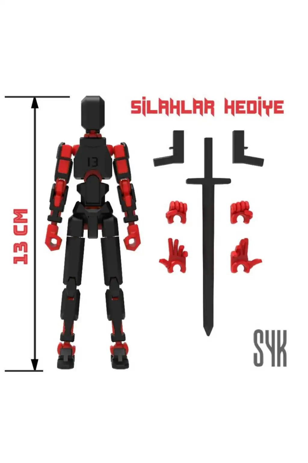 Robot 13 Dummy Kırmızı Siyah Tüm Eklemleri Hareketli Aksiyon Figürü Oyuncak