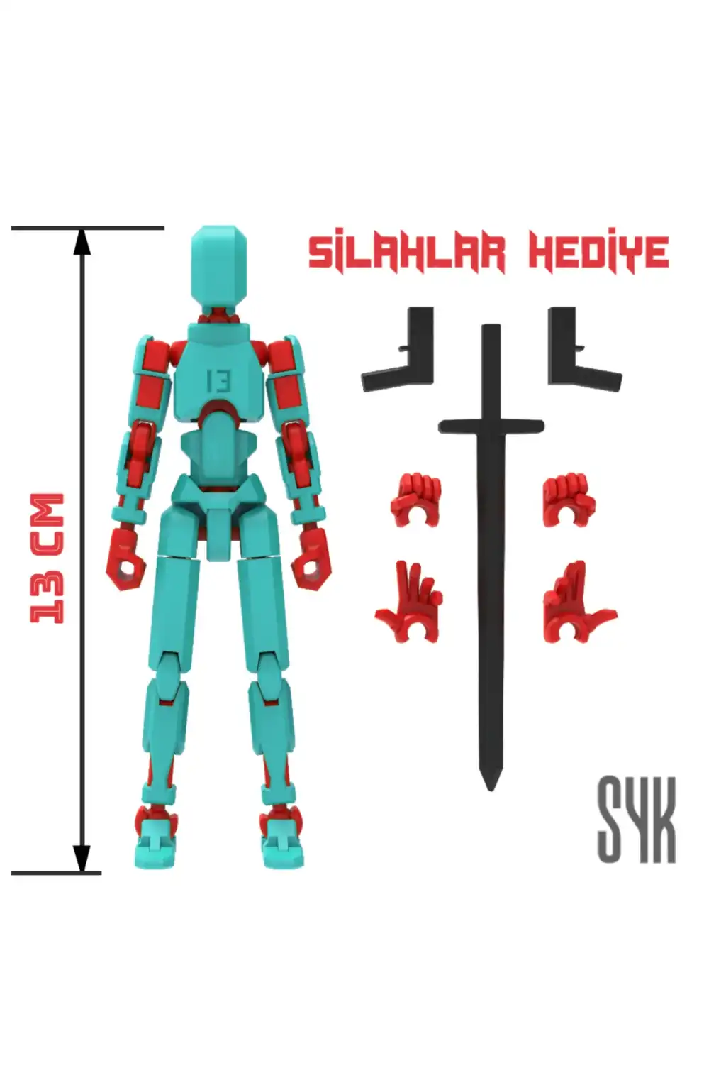 Tüm eklemleri hareketli olan bu Dummy figürü, çocukların eğlenceli ve interaktif oyun saatleri geçirmesini sağlar.; Turkuaz ve Kırmızı renkleriyle dikkat çeken tasarım, çocukların ilgisini kolayca çeker.; 3 boyutlu yazıcı ile üretilen bu Dummy, çocukların hayal gücünü desteklerken aynı zamanda motor becerilerinin gelişimine katkı sağlar.; Ürünün dış gövdesi PLA, iskeleti ise dayanıklı PETG malzemeden üretilmiştir.; Montajlanmış şekilde gönderilmektedir.; (Boy: 13 cm).; DUMMY 13 Printable Jointed Figure © 20