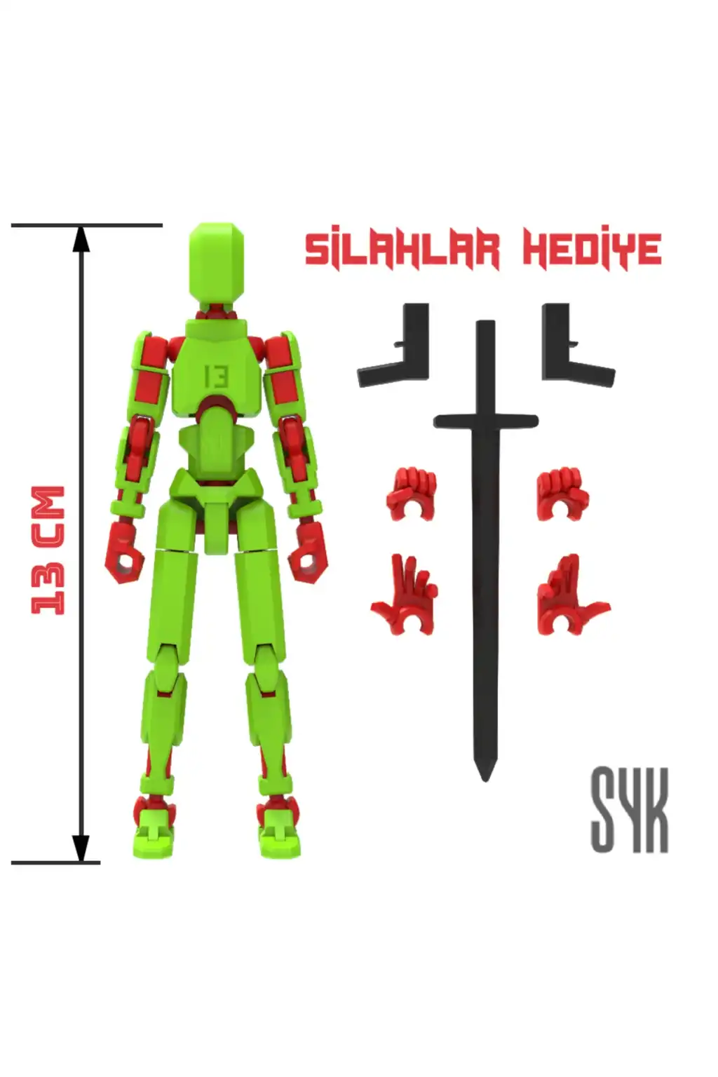 Tüm eklemleri hareketli olan bu Dummy figürü, çocukların eğlenceli ve interaktif oyun saatleri geçirmesini sağlar.; Yeşil ve Kırmızı renkleriyle dikkat çeken tasarım, çocukların ilgisini kolayca çeker.; 3 boyutlu yazıcı ile üretilen bu Dummy, çocukların hayal gücünü desteklerken aynı zamanda motor becerilerinin gelişimine katkı sağlar.; Ürünün dış gövdesi PLA, iskeleti ise dayanıklı PETG malzemeden üretilmiştir.; Montajlanmış şekilde gönderilmektedir.; (Boy: 13 cm).; DUMMY 13 Printable Jointed Figure © 2023