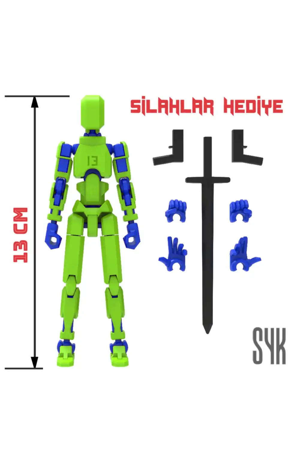 Tüm eklemleri hareketli olan bu Dummy figürü, çocukların eğlenceli ve interaktif oyun saatleri geçirmesini sağlar.; Yeşil ve Mavi renkleriyle dikkat çeken tasarım, çocukların ilgisini kolayca çeker.; 3 boyutlu yazıcı ile üretilen bu Dummy, çocukların hayal gücünü desteklerken aynı zamanda motor becerilerinin gelişimine katkı sağlar.; Ürünün dış gövdesi PLA, iskeleti ise dayanıklı PETG malzemeden üretilmiştir.; Montajlanmış şekilde gönderilmektedir.; (Boy: 13 cm).; DUMMY 13 Printable Jointed Figure © 2023 by