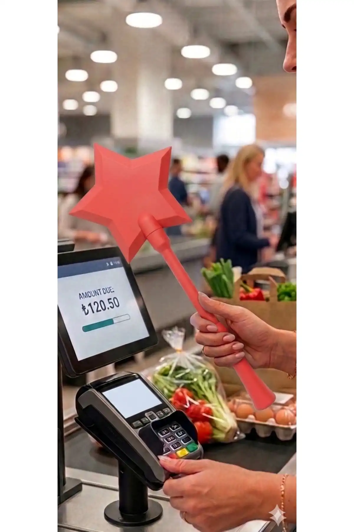 Alışveriş deneyiminizi eğlenceli ve dikkat çekici hale getiren Sihirli Kredi Kartı Ödeme Sopası ile temassız ödemeleri farklı bir şekilde yapabilirsiniz. Yıldız uçlu özel tasarımı sayesinde ödeme cihazlarına uzaktan dokunarak temassız ödeme işlemini gerçekleştirebilirsiniz.