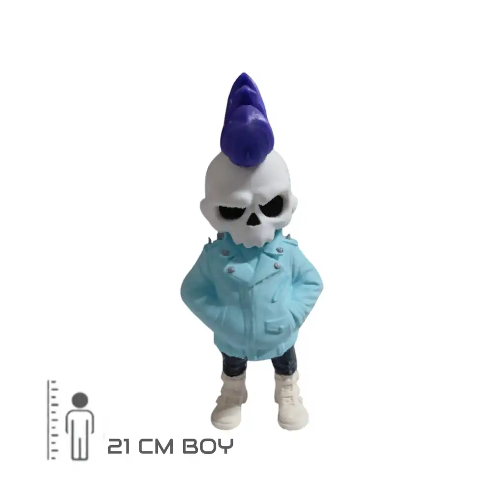 Punk tarzı saç detayı, karizmatik duruşu ve modern kombin stiliyle bulunduğu ortama güçlü bir karakter katar. Çalışma masanızda, rafınızda ya da koleksiyon köşenizde fark yaratacak özel bir parçadır.
